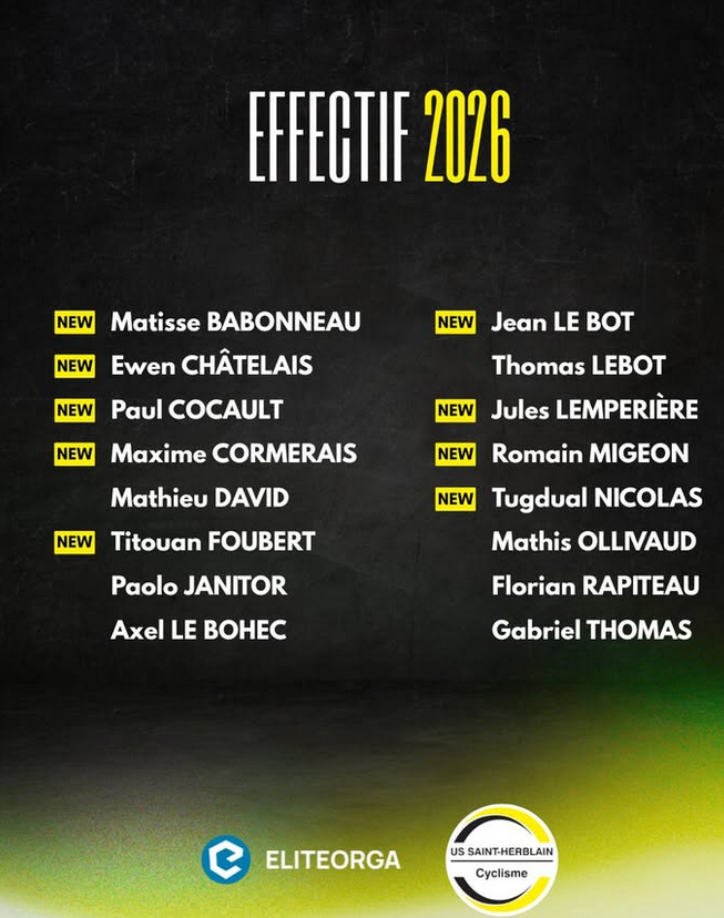 Le club de Loire Atlantique présente son effectif N3 pour la saison 2026 Info: US St Herblain Cyclisme