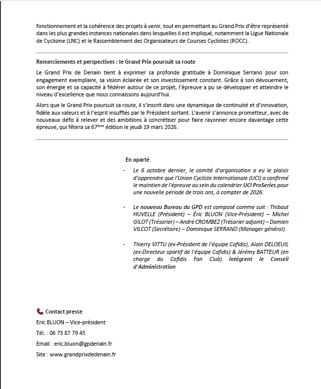 GP de Denain "Communiqué de presse 2"