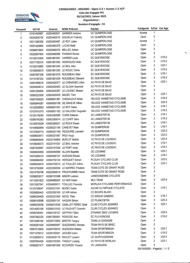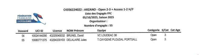 DIMANCHE 5 OCTOBRE 2025 A ARZANO (56) Voir les engagés en images Remerciements à Madame FLEJO ColettePrésidente de jury
