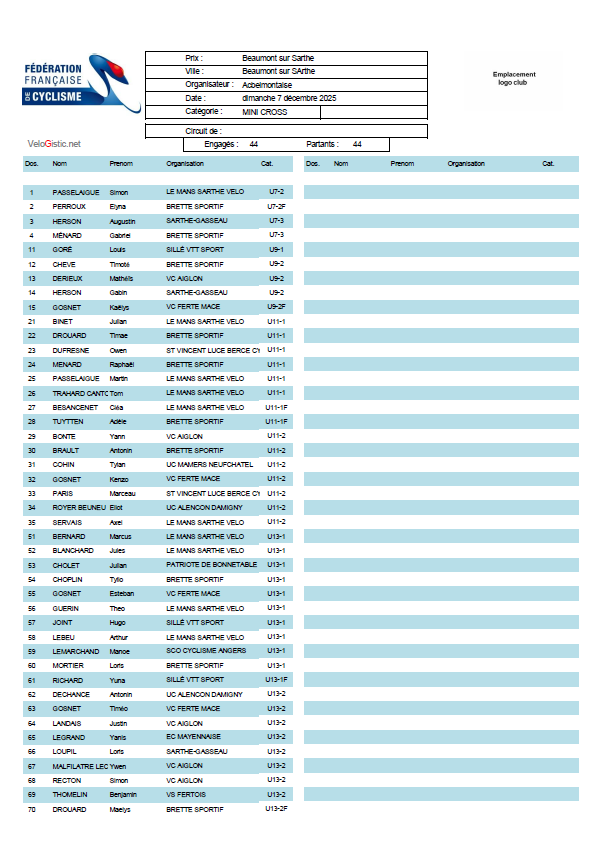 DIMANCHE 7 DECEMBRE 2025 A BEAUMONT SUR SARTHE (72)