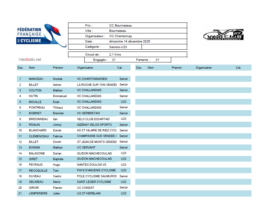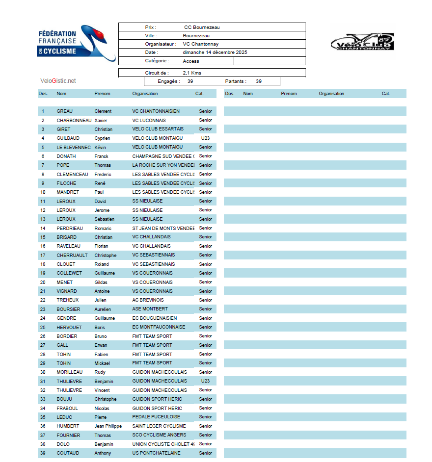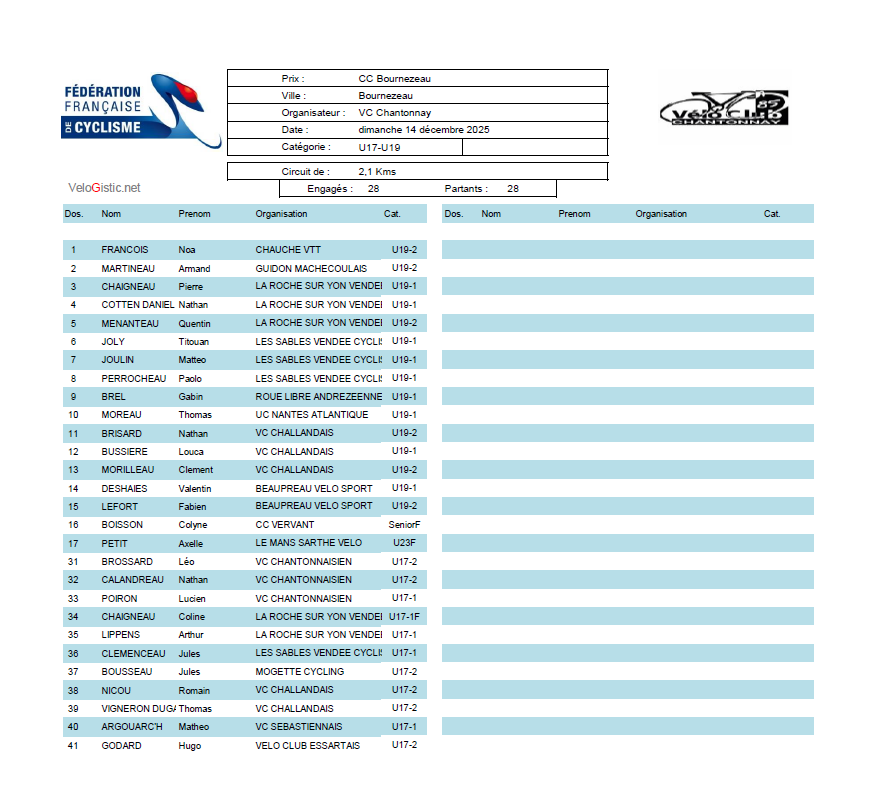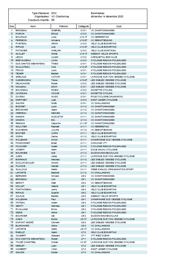 DIMANCHE 14 DECEMBRE 2025 A BOURNEZEAU (85)