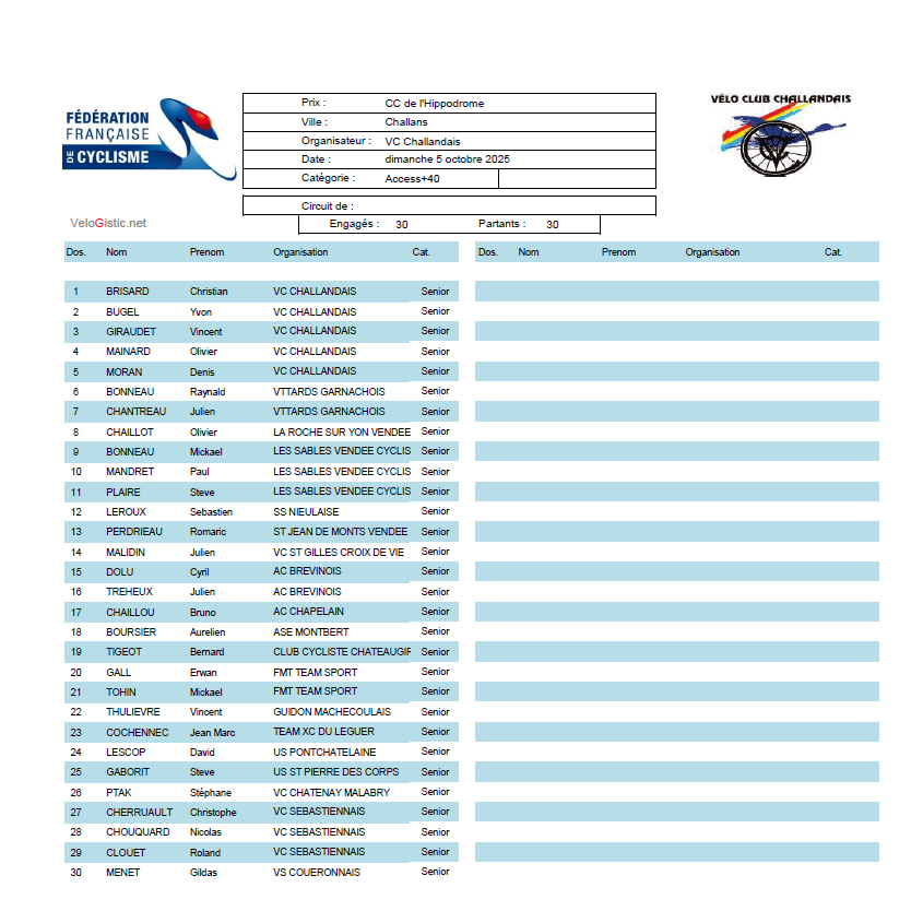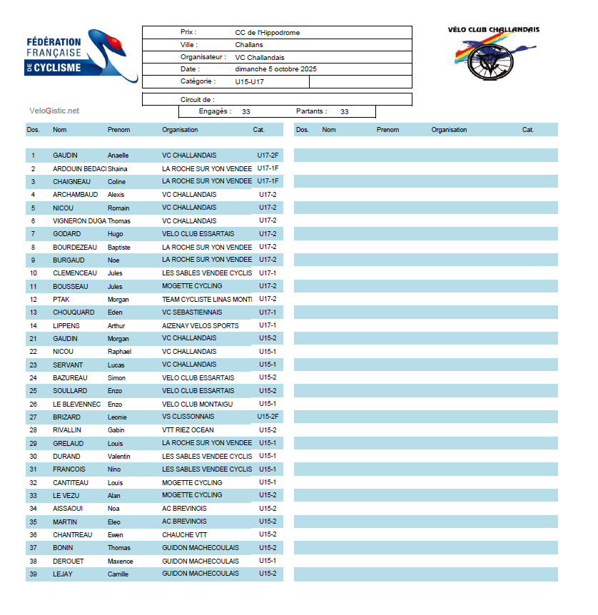 DIMANCHE 5 OCTOBRE 2025 A CHALLANS (85)