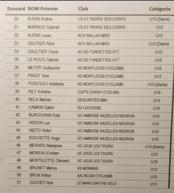 41 RABIER Hugo AS MONTLOUIS CYCLISME U11