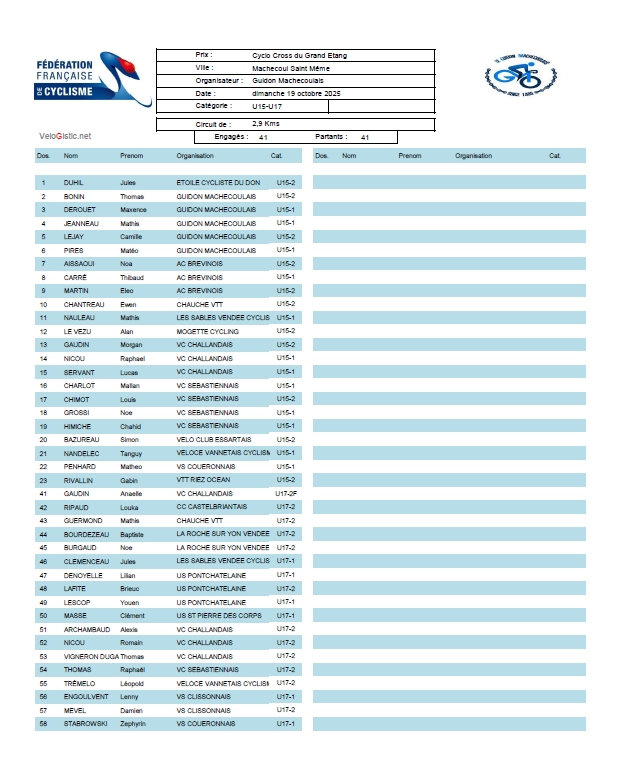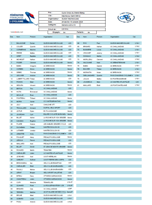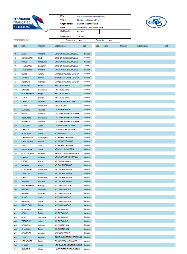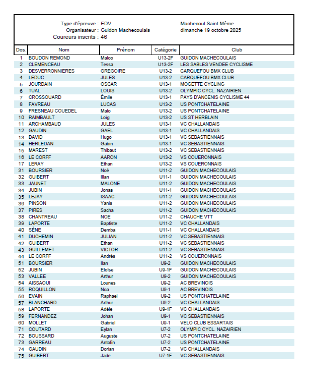 DIMANCHE 19 OCTOBRE 2025 A MACHECOUL (44) VOIR LES ENGAGES EN IMAGES Remerciements à Hubert GUILBAUDVendée Chrono Finish