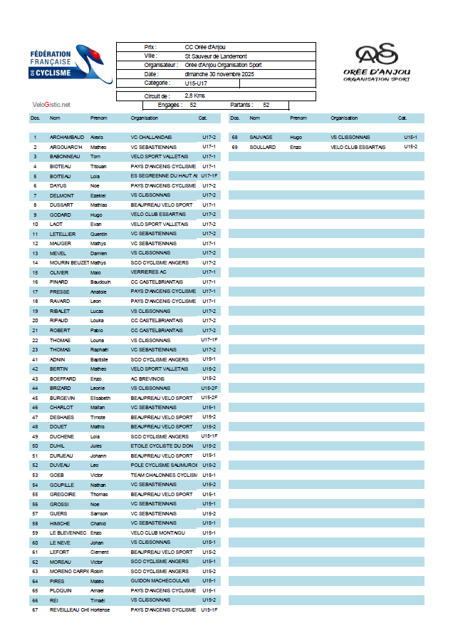 92 CROSSOUARD Antoine U7-1 PAYS D'ANCENIS CYCLISME 44