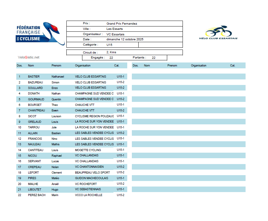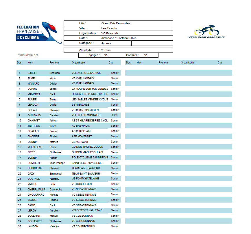 DIMANCHE 12 OCTOBRE 2025 AUX ESSARTS (85)