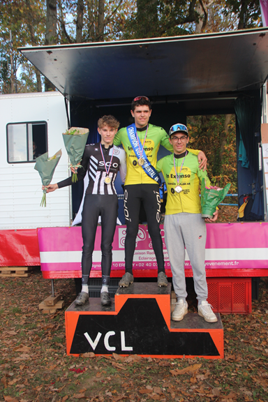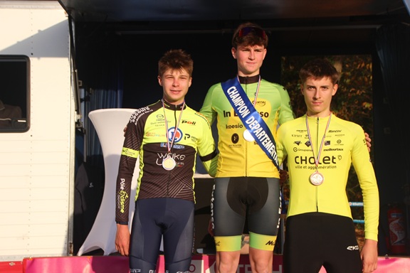 derniers tours. Amaury VERGER remportait le classement scratch et le titre départemental Espoir devant Soan RUESCHE et Matteï CACAULT qui reconnaissaient sportivement la supériorité du lauréat. Séraphin BARBOT, à la grande joie de son père, organisateur