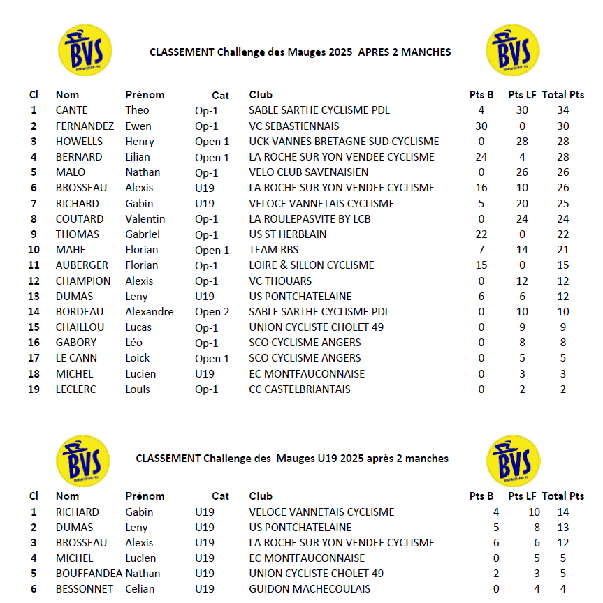 CLASSEMENT OPEN APRES LA DEUXIEME MANCHE A St PHILBERT EN MAUGES