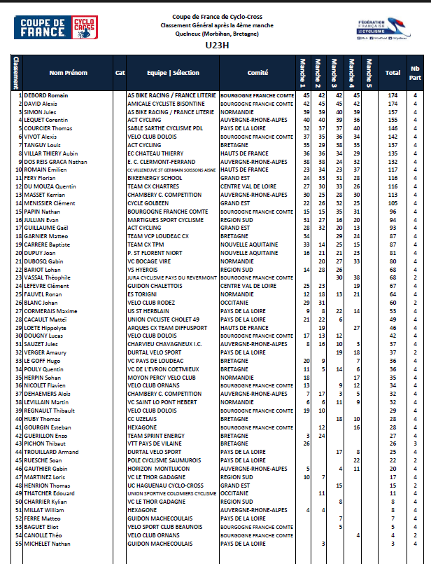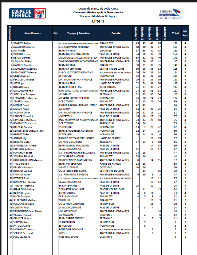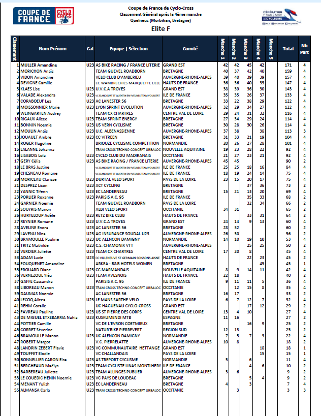 Voir les Classements Généraux en images après la manche de Quelneuc (Morbihan)