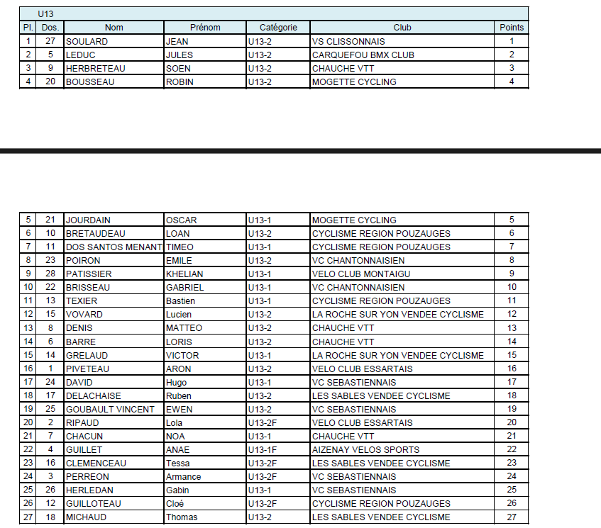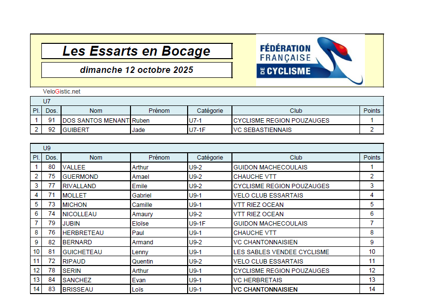Org. : VC Essartais VOIR LES CLASSEMENTS EN IMAGES Remerciements à Hubert GUILBAUDVendée Chrono Finish