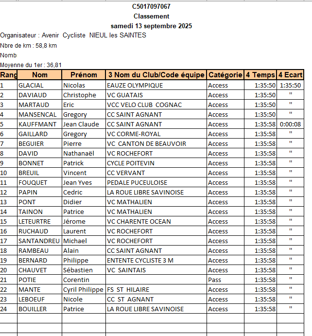 Ecrit par Pascal dans Résultats le lundi 15 septembre 2025 à 13:58
