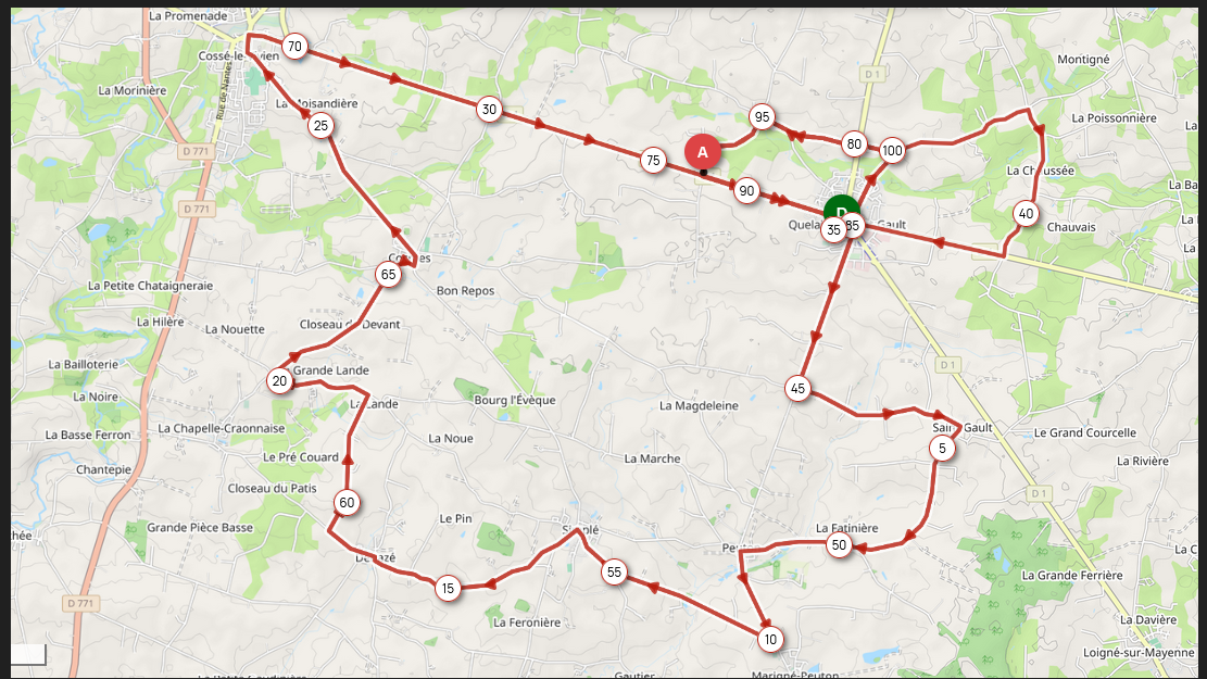 QUELAINES - QUELAINES : 34,5km + 42,7km + 4 tours de 6,8km soit 104,400km