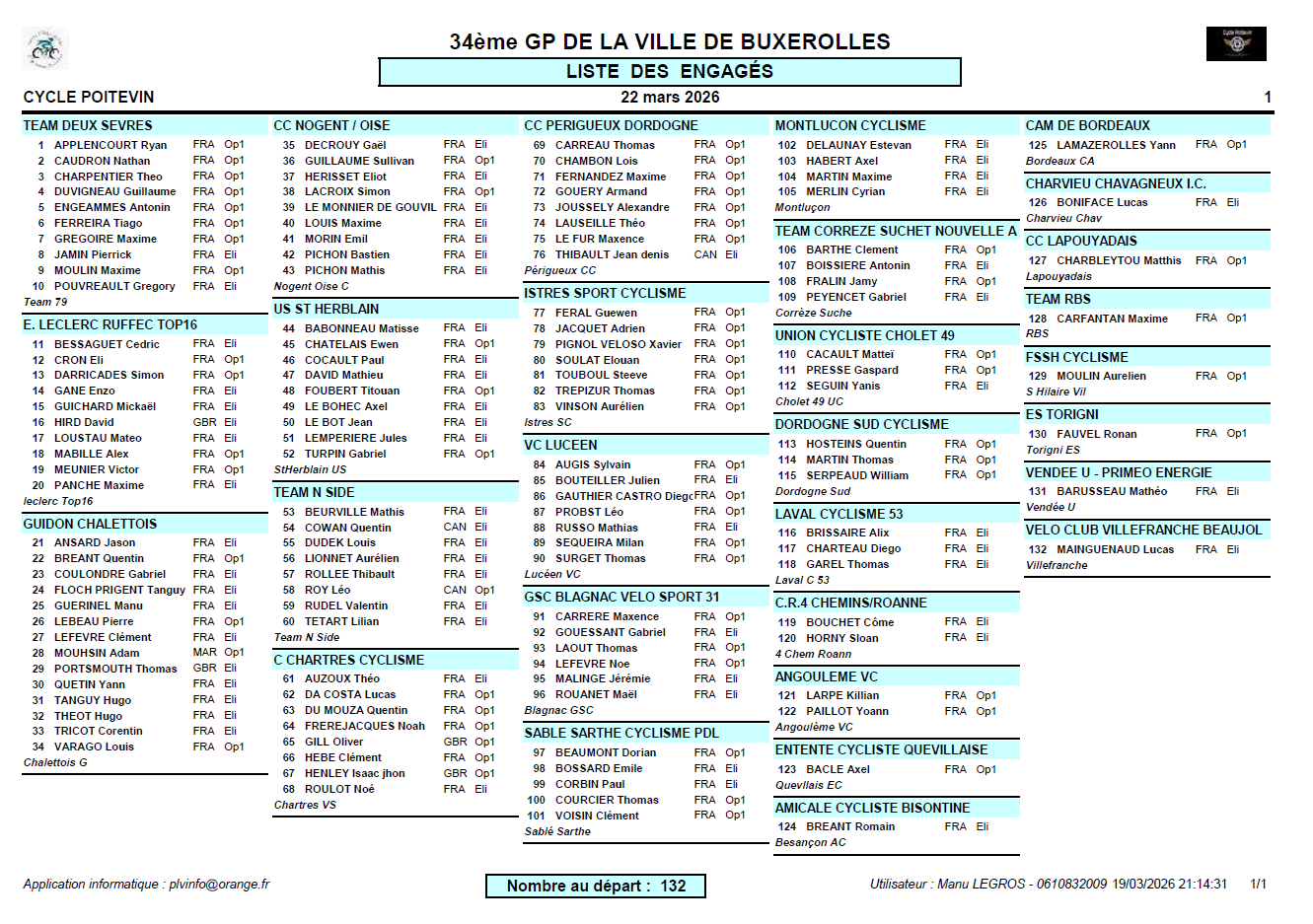 DIMANCHE 22 MARS 2026 A BUXEROLLES (86)