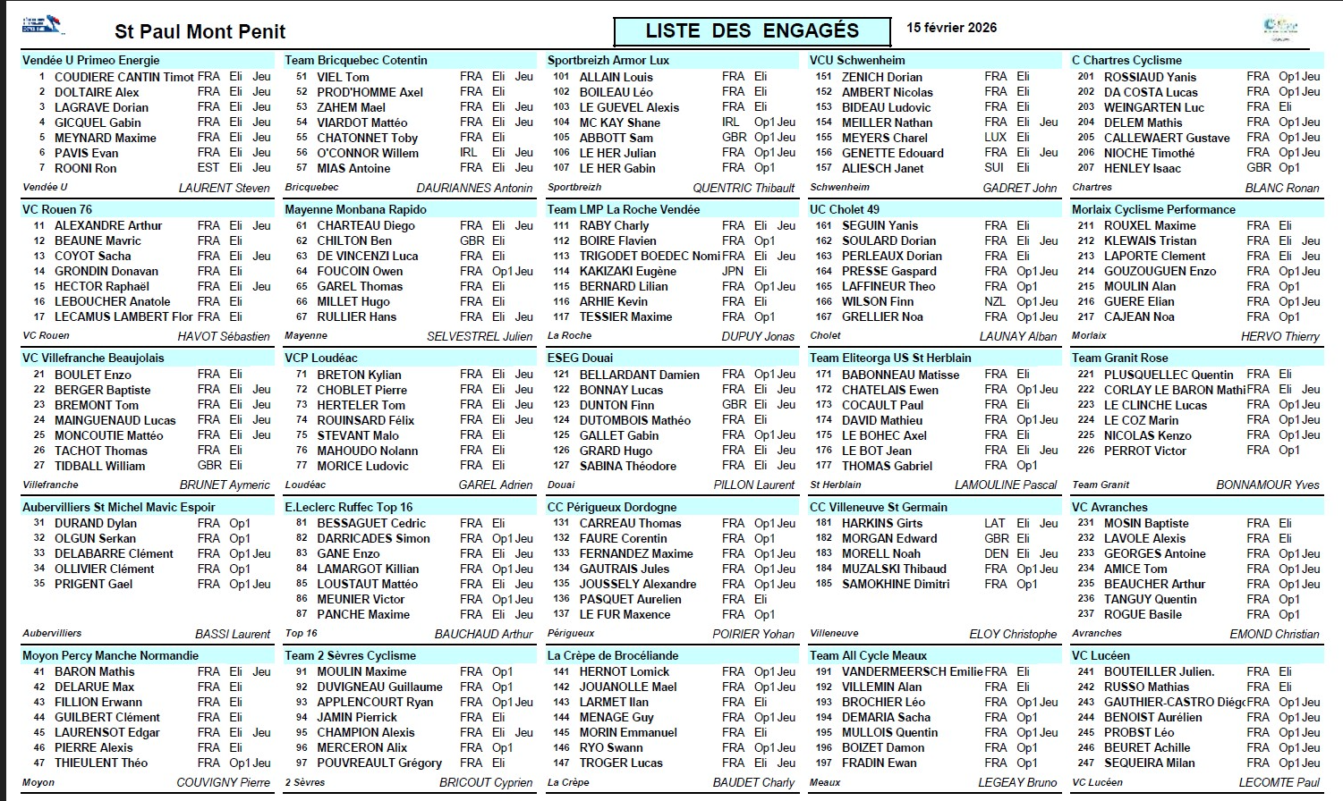 ETAPE 3 – DIMANCHE 15 FEVRIER 2026 – 167,9km