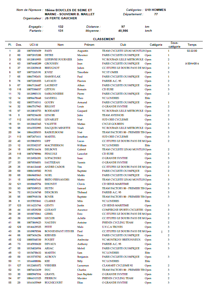 VOIR LE CLASSEMENT EN PIECE JOINTE OU EN IMAGES Remerciements à Jean-François MAILLET Président de la JS Ferté Gaucher