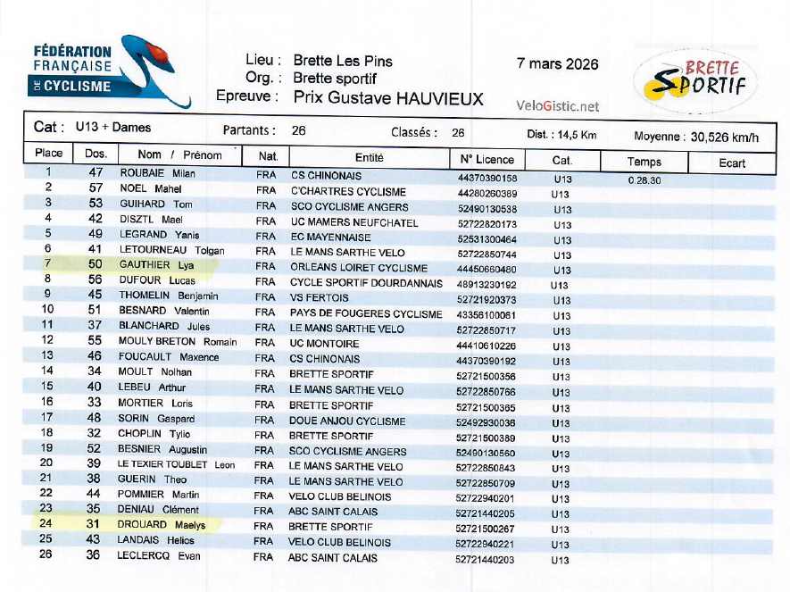 Ecrit par Pascal dans Résultats le samedi 7 mars 2026 à 20:45