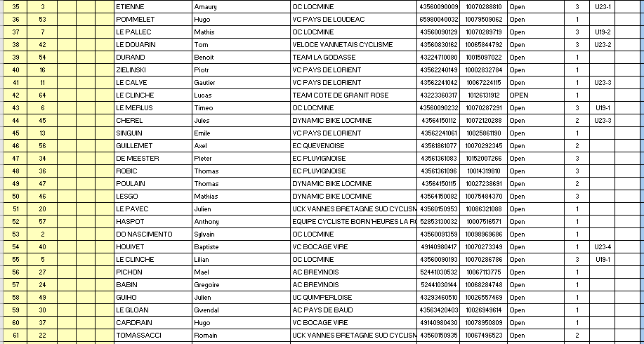 1 114 1 13 10 LAMANDE Corentin GUERLEDAN CYCLING CLUB 43224660076 10157401577 Access 3
