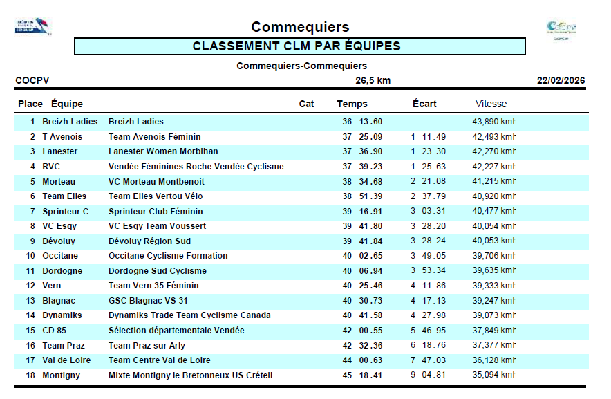 VOIR LE CLASSEMENT DU CONTRE LA MONTRE EN IMAGE