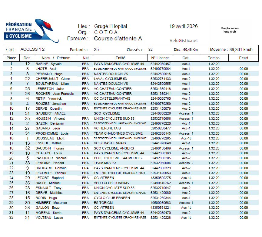 Ecrit par Pascal dans Résultats le lundi 20 avril 2026 à 10:06