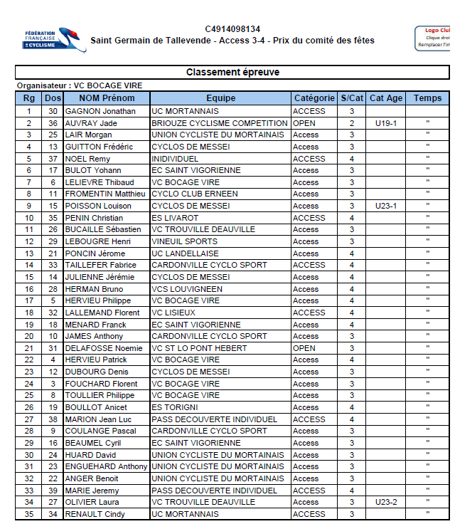 VOIR LES CLASSEMENTS EN IMAGES